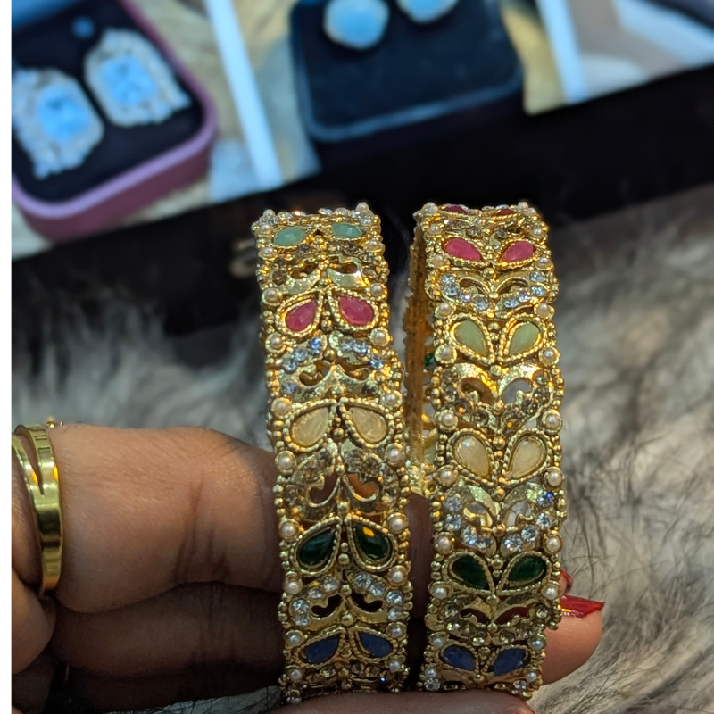 Design: Elegant antique gold-plated bangles featuring a beautiful floral cutout pattern.